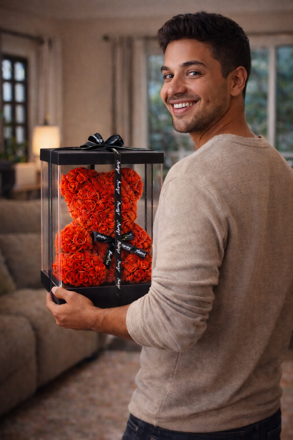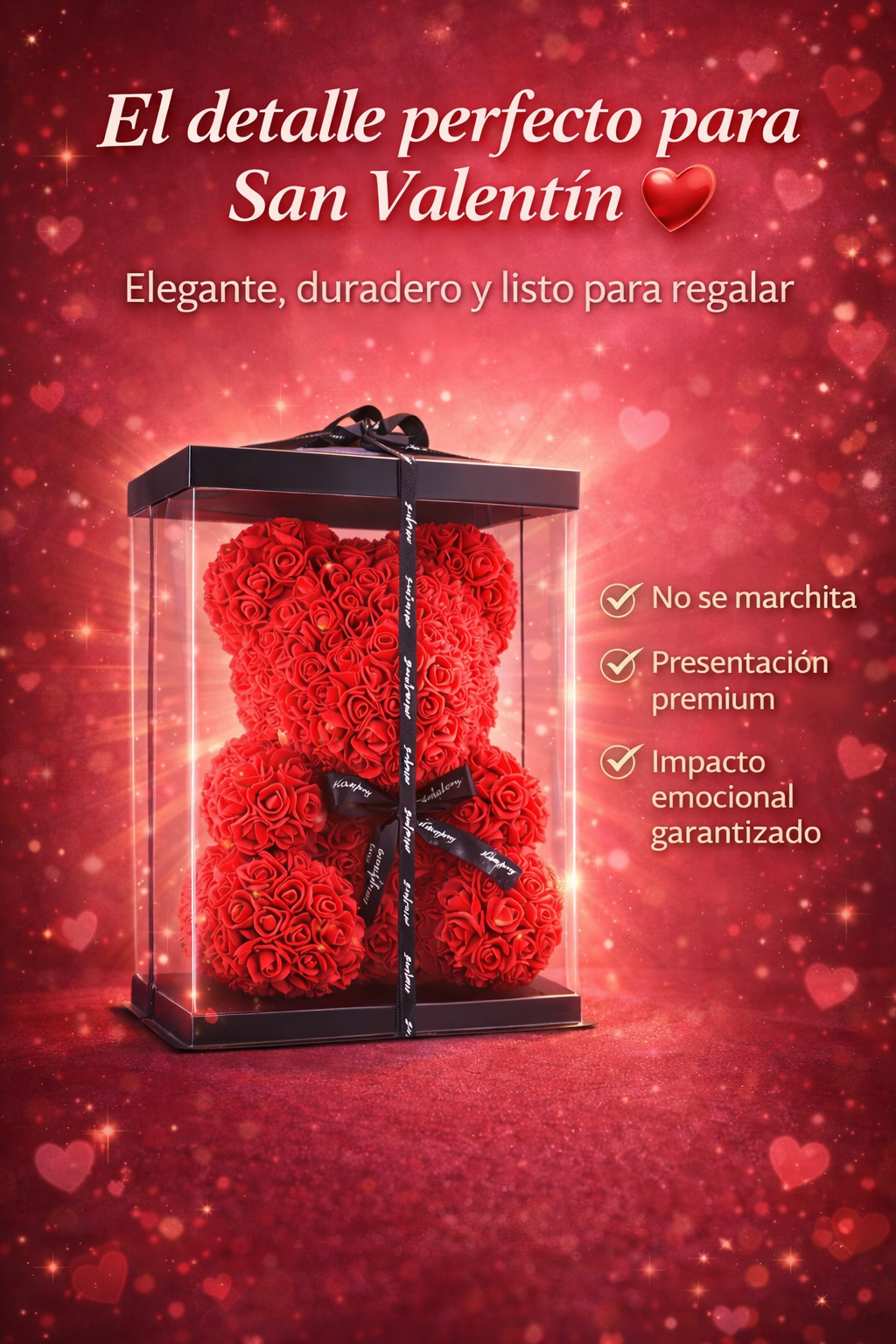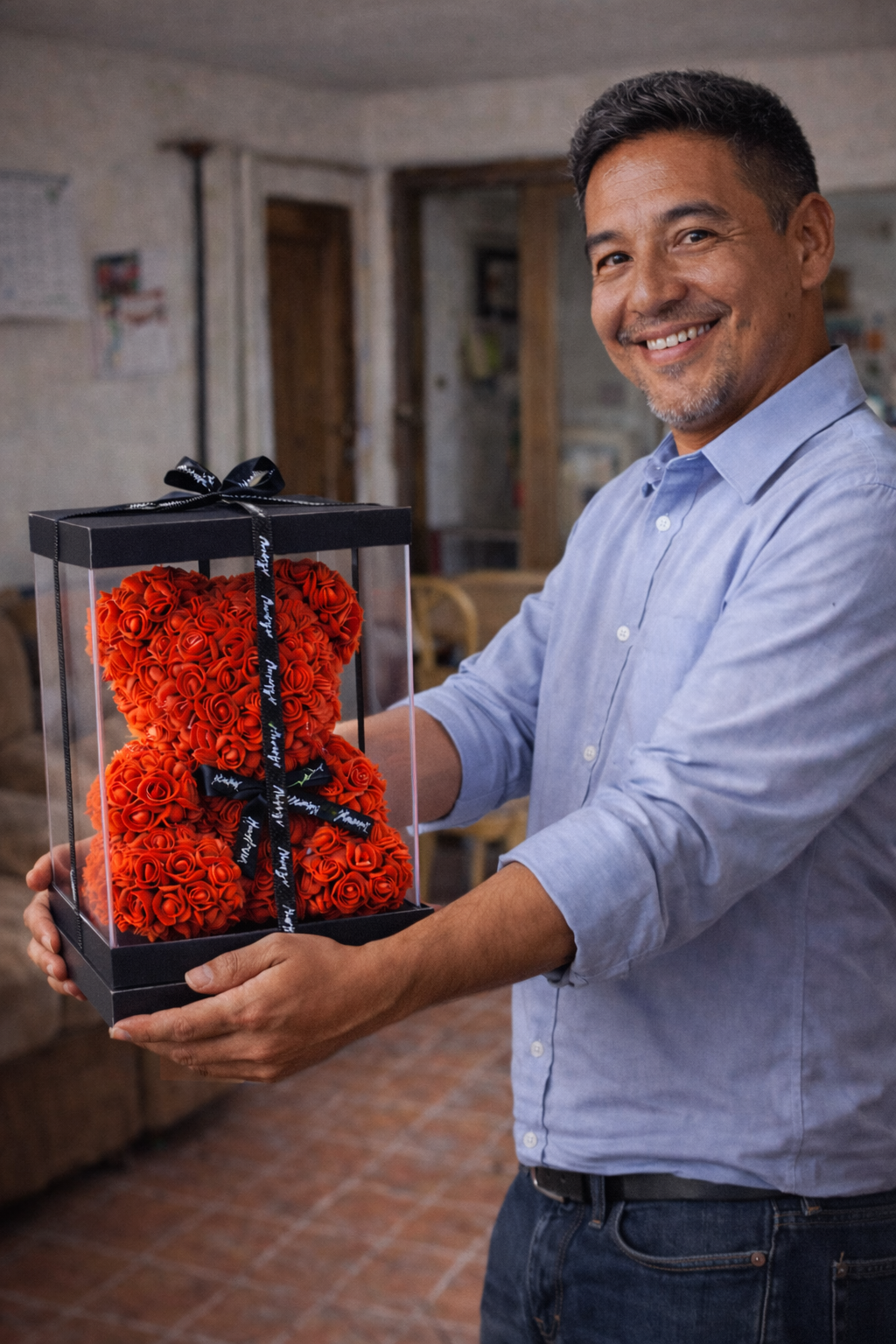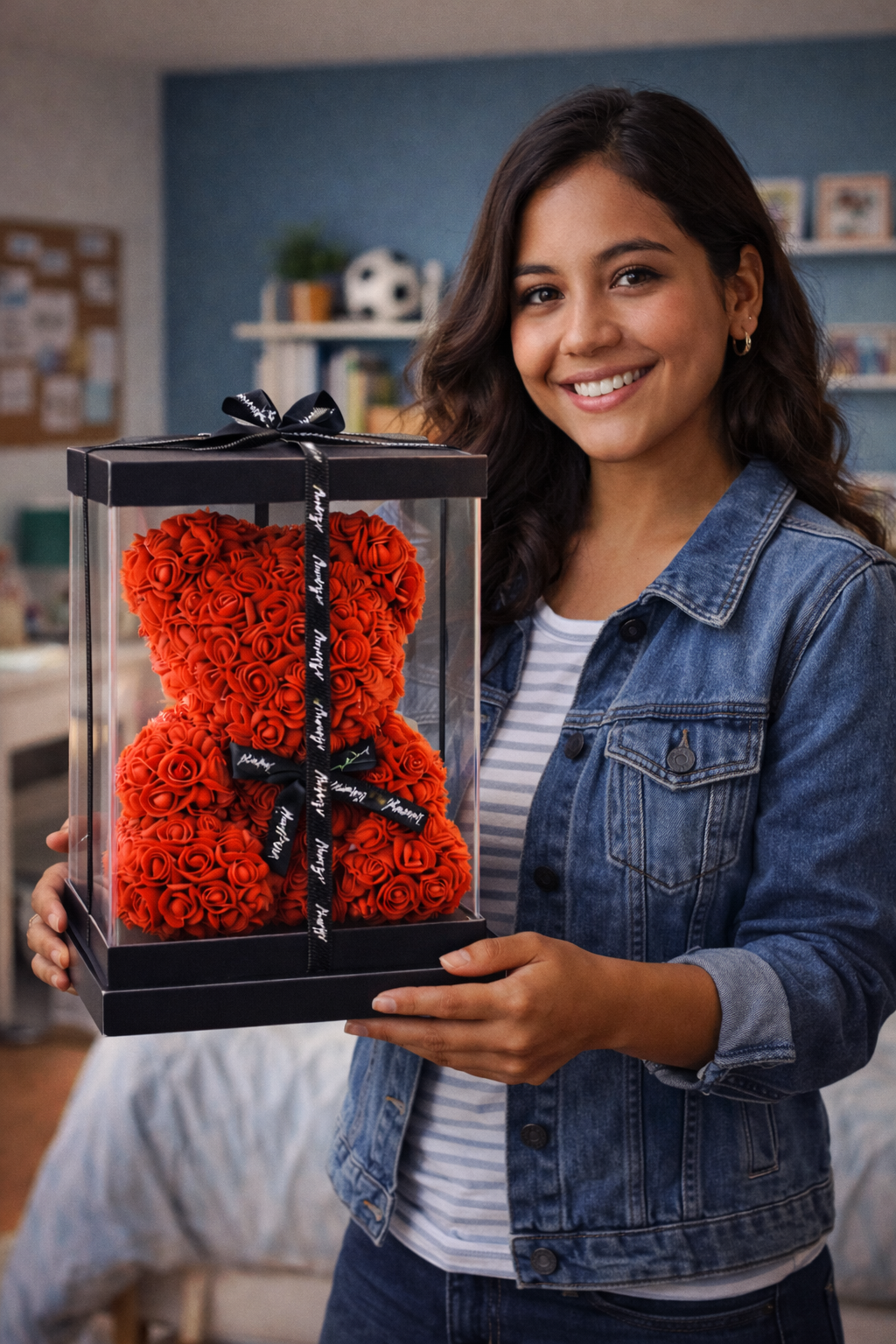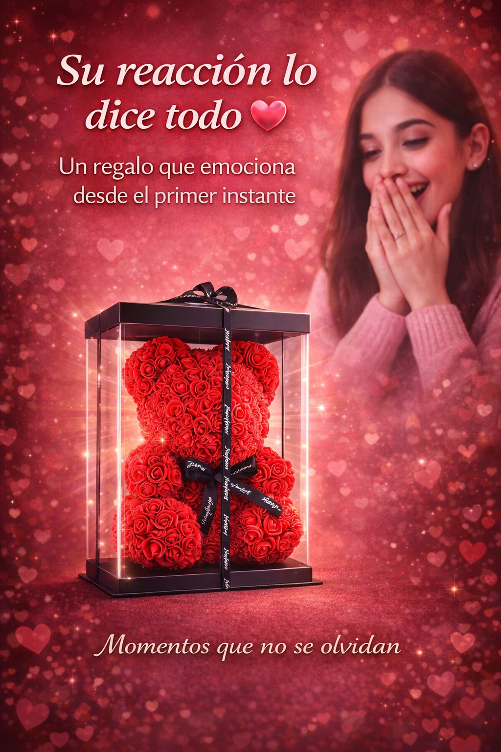 A diferencia de Flores u Obsequios Tradicionales que desaparecen con el tiempo, este Oso con Rosas está Diseñado para Permanecer Intacto, Convirtiéndose en un Recuerdo Visible que Acompaña el día a día.
